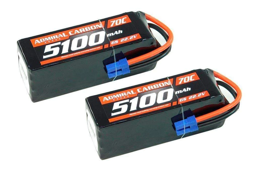 2 Pack of Admiral Carbon 5100mAh 6S 70C LiPo Batteries with EC5 Connectors – EPRAC5006E