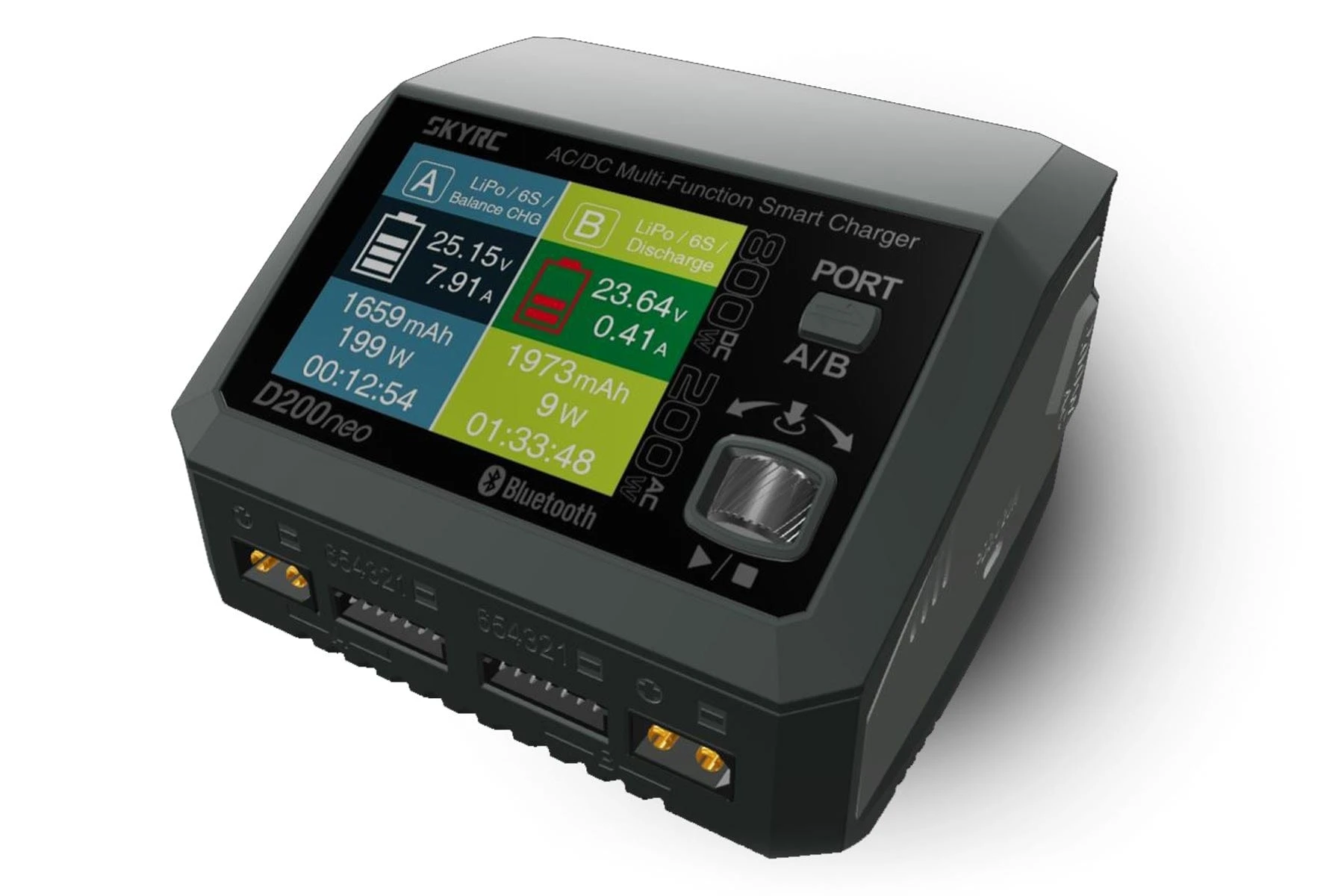 The SkyRC D200neo 200W 6 Cell (6S) AC/DC LiPo Battery Multi-Function Smart Charger is an update version of the D200. It has dual ports to support most batteries in the RC industry, with features that include the SkyCharger App control, Charger Master control, PD/QC3.0 fast charge, and a newly upgraded scroll button control. Take your charging experience to the next level with this powerful and meticulously designed multi-function charger.